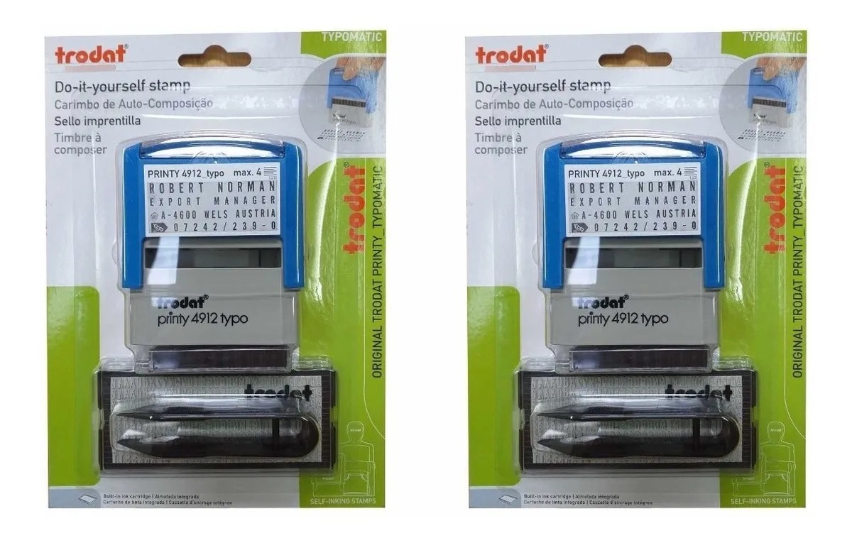 Kit com 2 Carimbos Trodat 4912 Typomatic - Monte Seu Texto No Carimbo - Exterior Azul